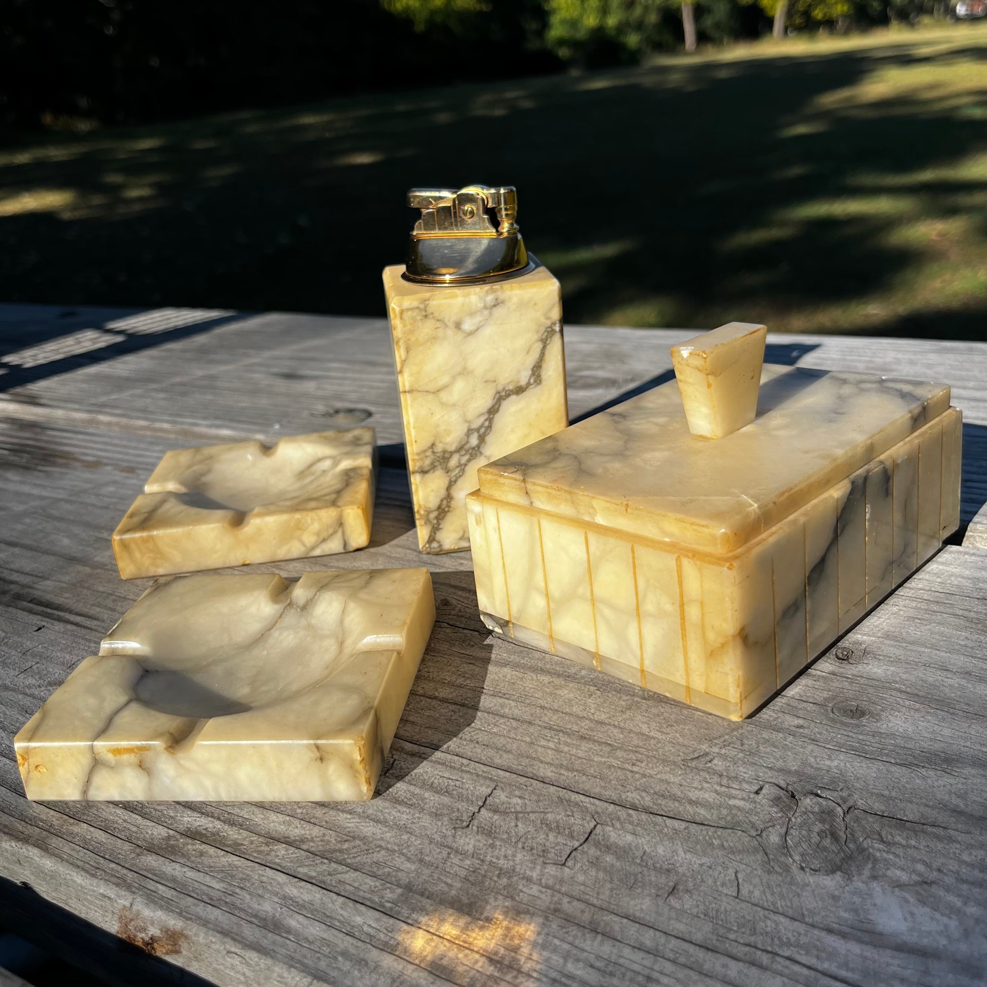 1950s Marble ashtray and lighter set.