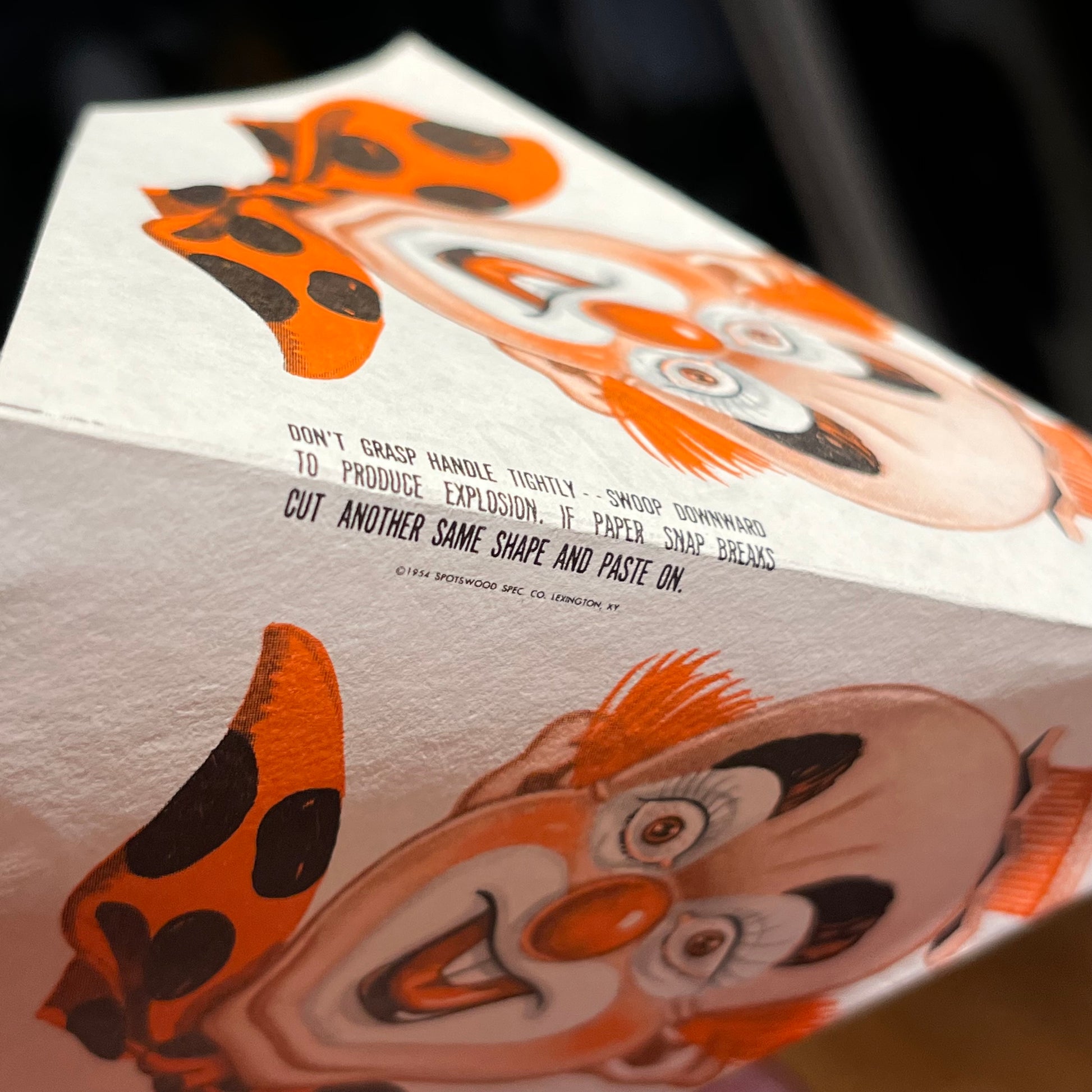 1954 Cardboard circus clown popping pistol. Compliments of Coca' Cola.