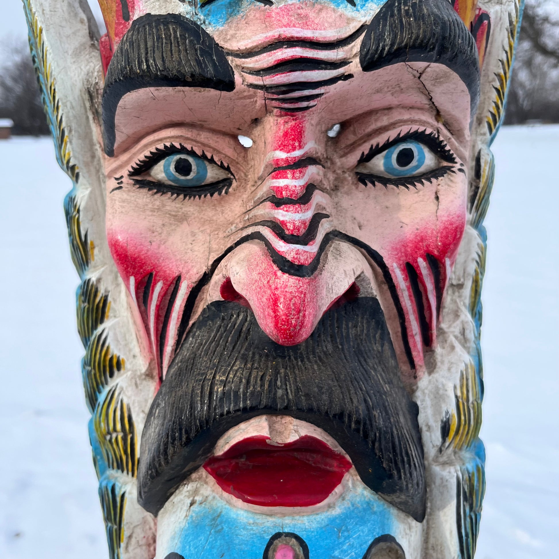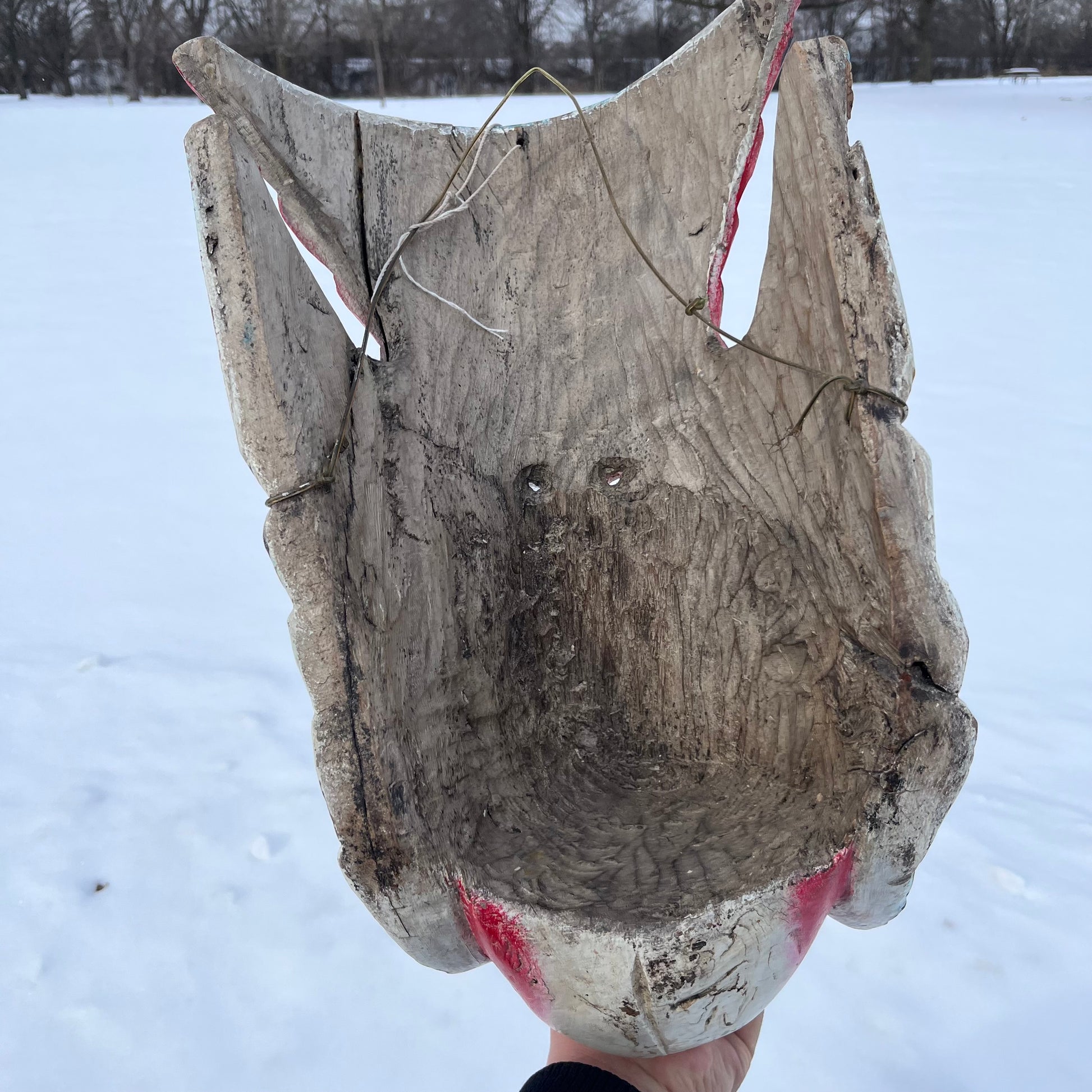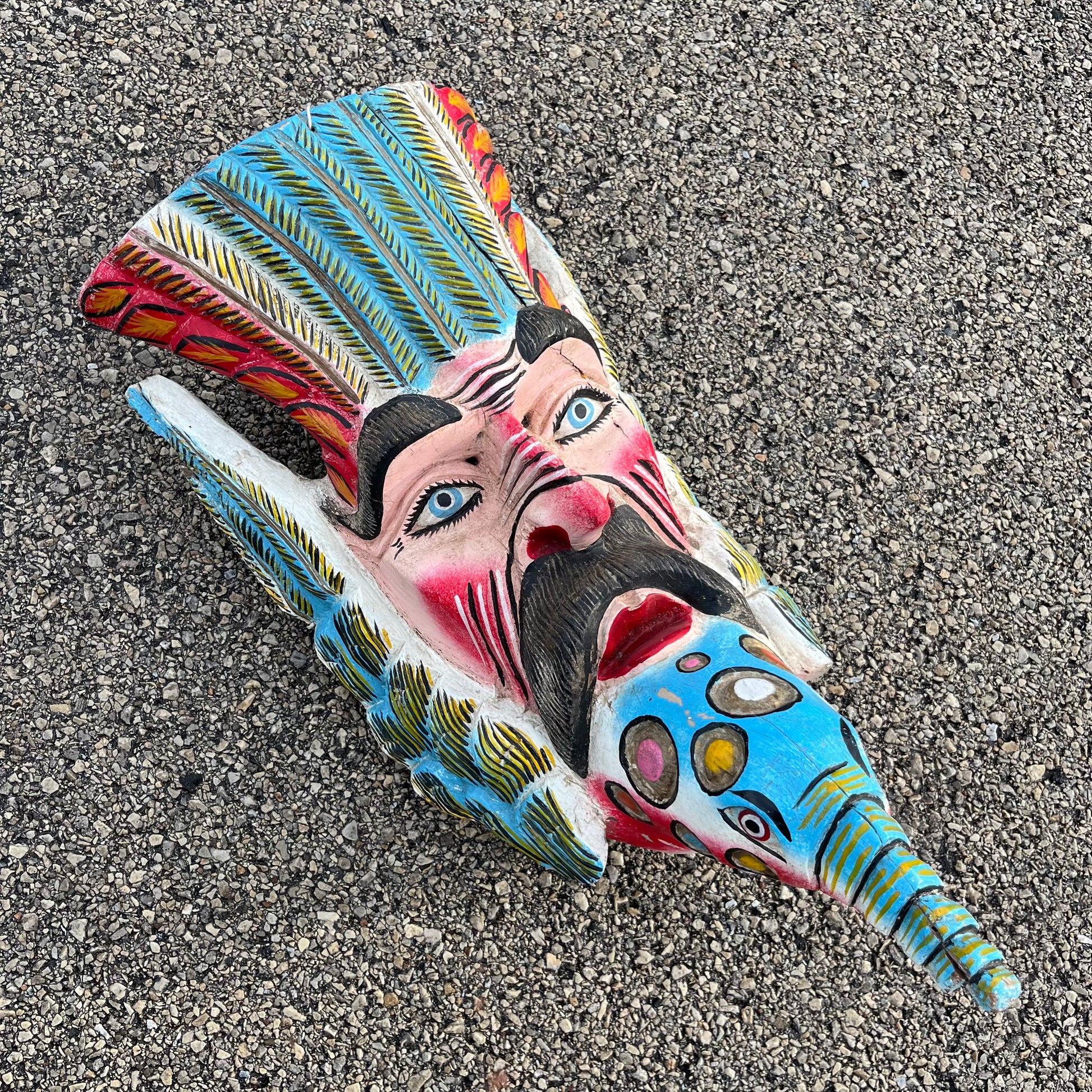 1960s/1970s Decorative Bird man mask. Measures 23 x 9 inches. Made in Guerrero, Mexico.