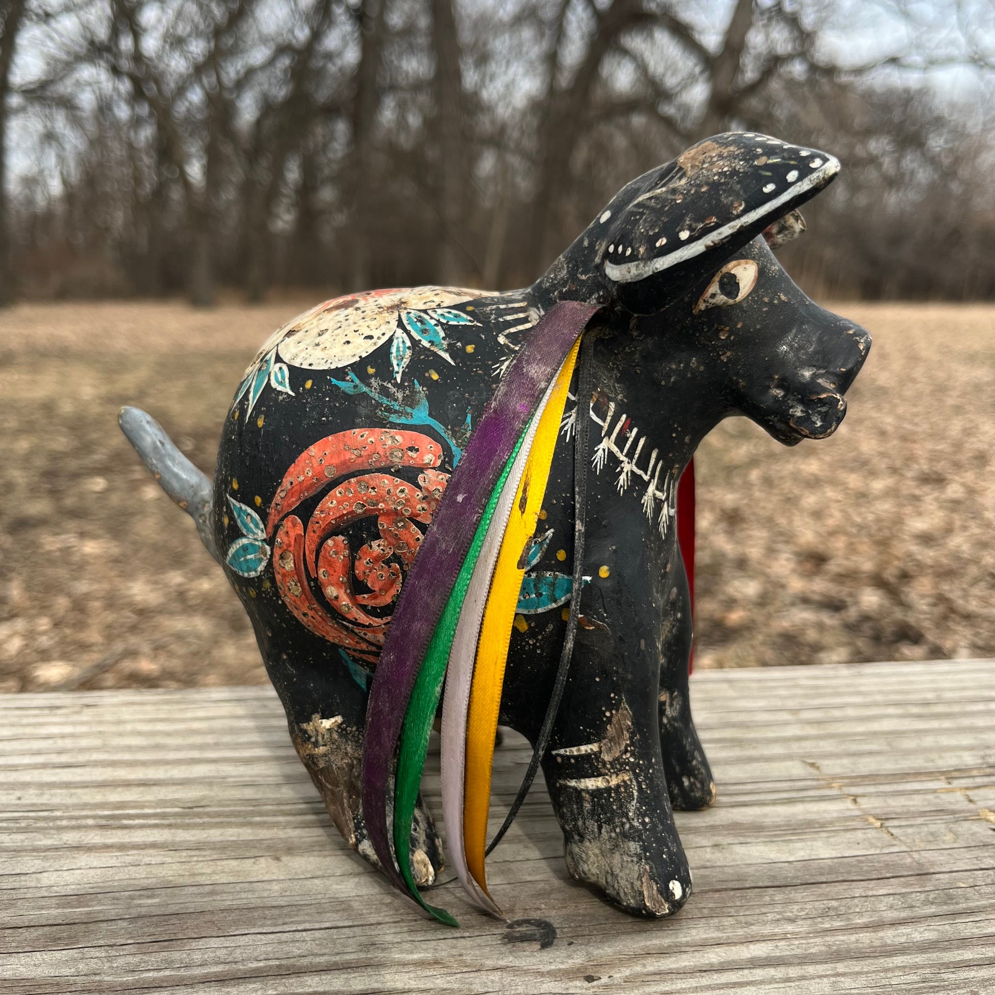 Hand crafted boar gourd maraca. Made in Guerrero, Mexico.