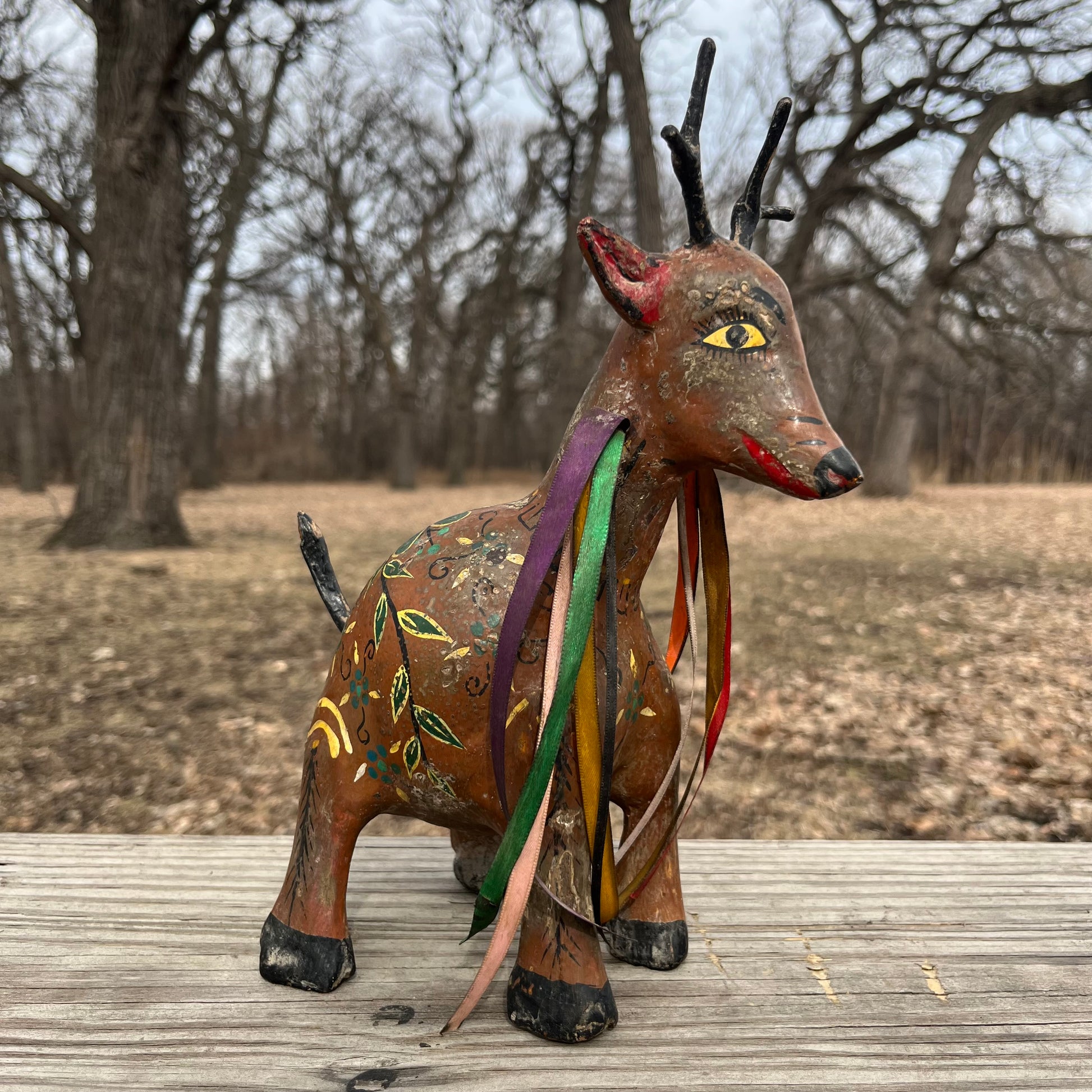 Hand crafted deer gourd maraca. Made in Guerrero, Mexico.