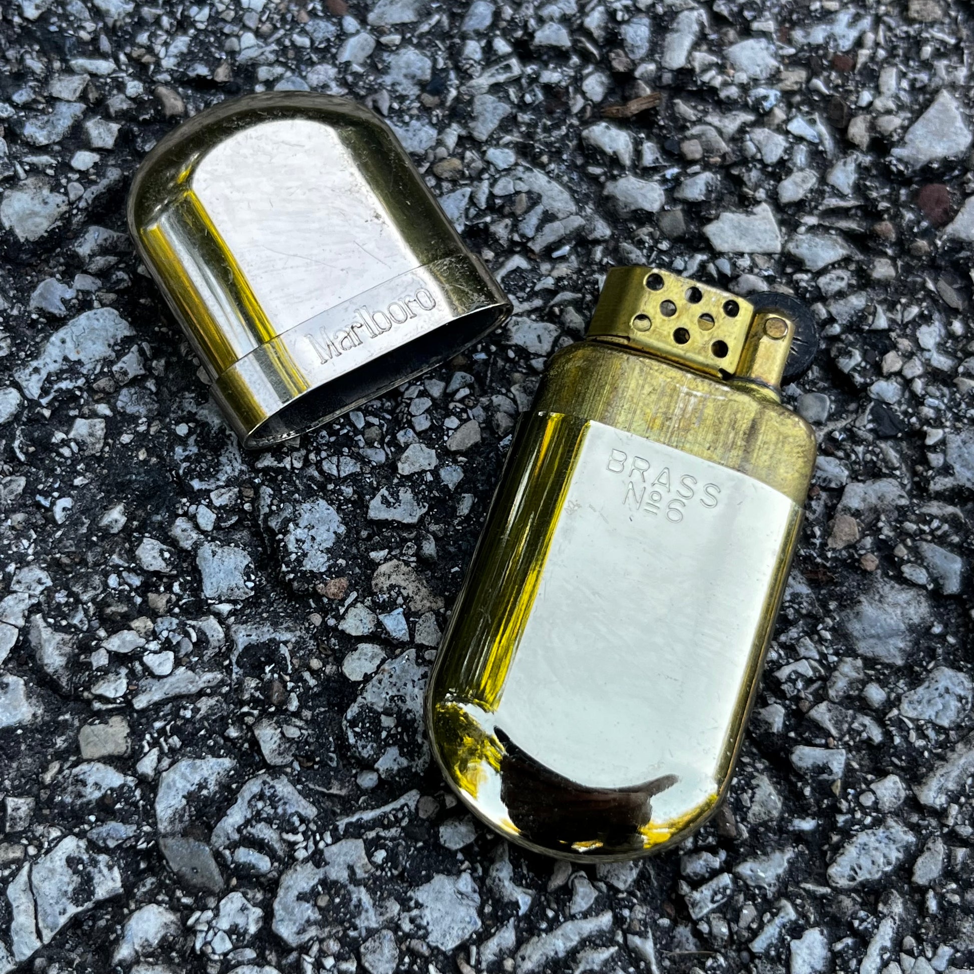 Vintage brass Marlboro pocket lighter.