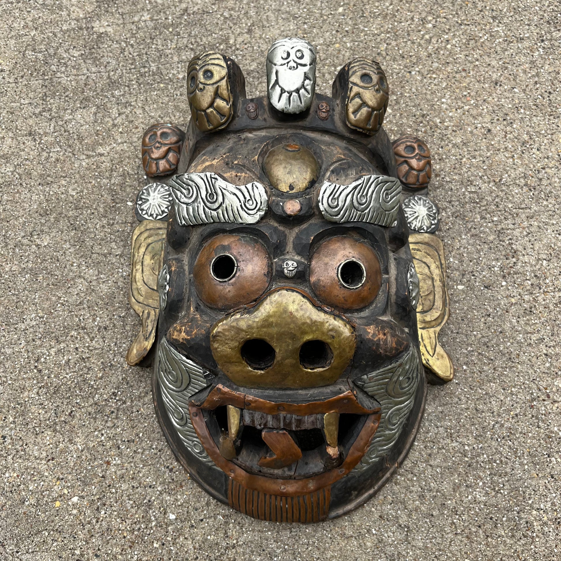 Vintage hand crafted Tibetan Mahakala mask.