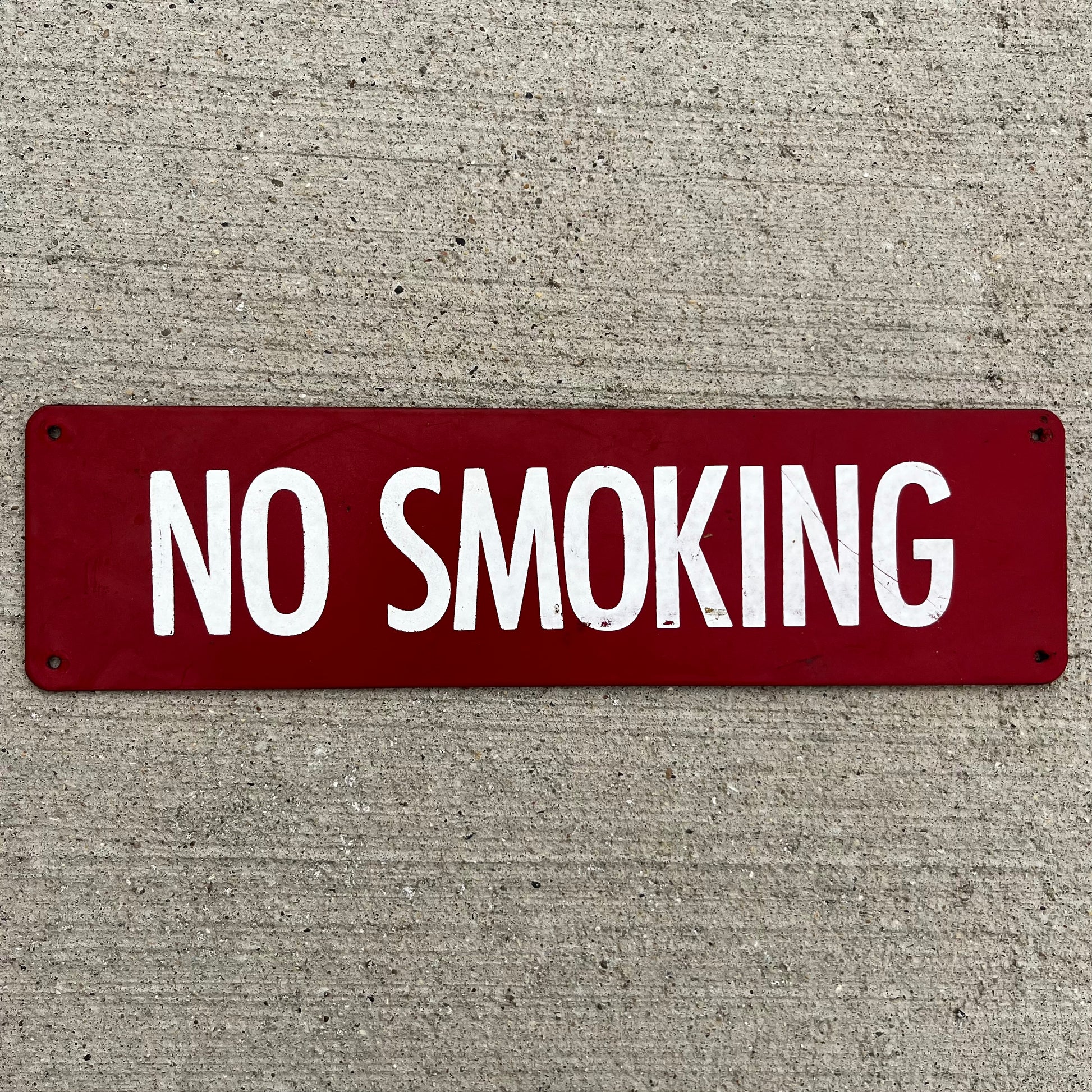 Vintage “No Smoking” metal sign. Measures 14 x 4 inches.