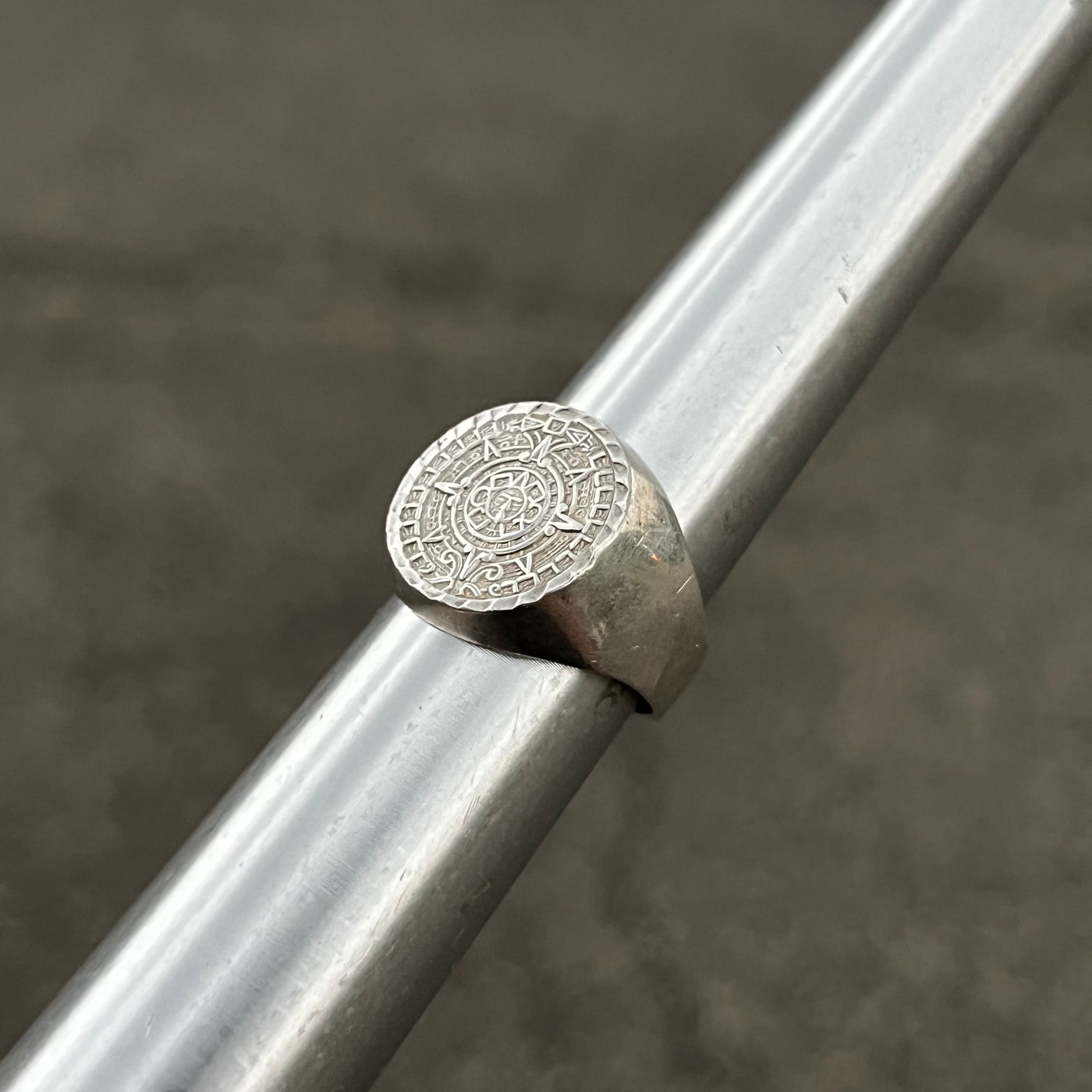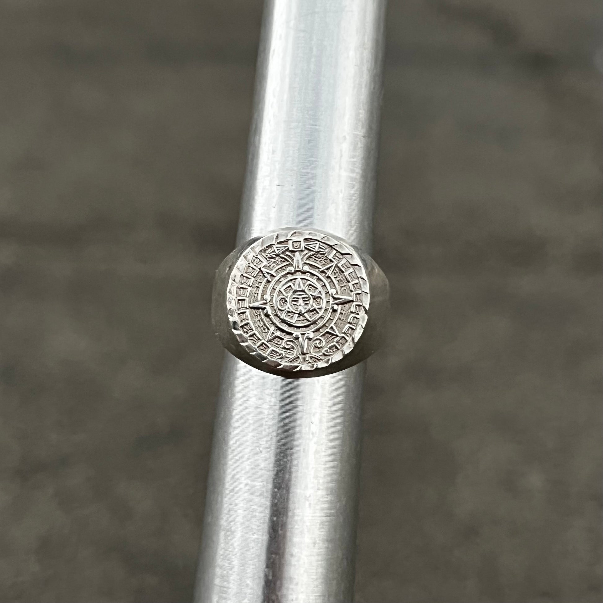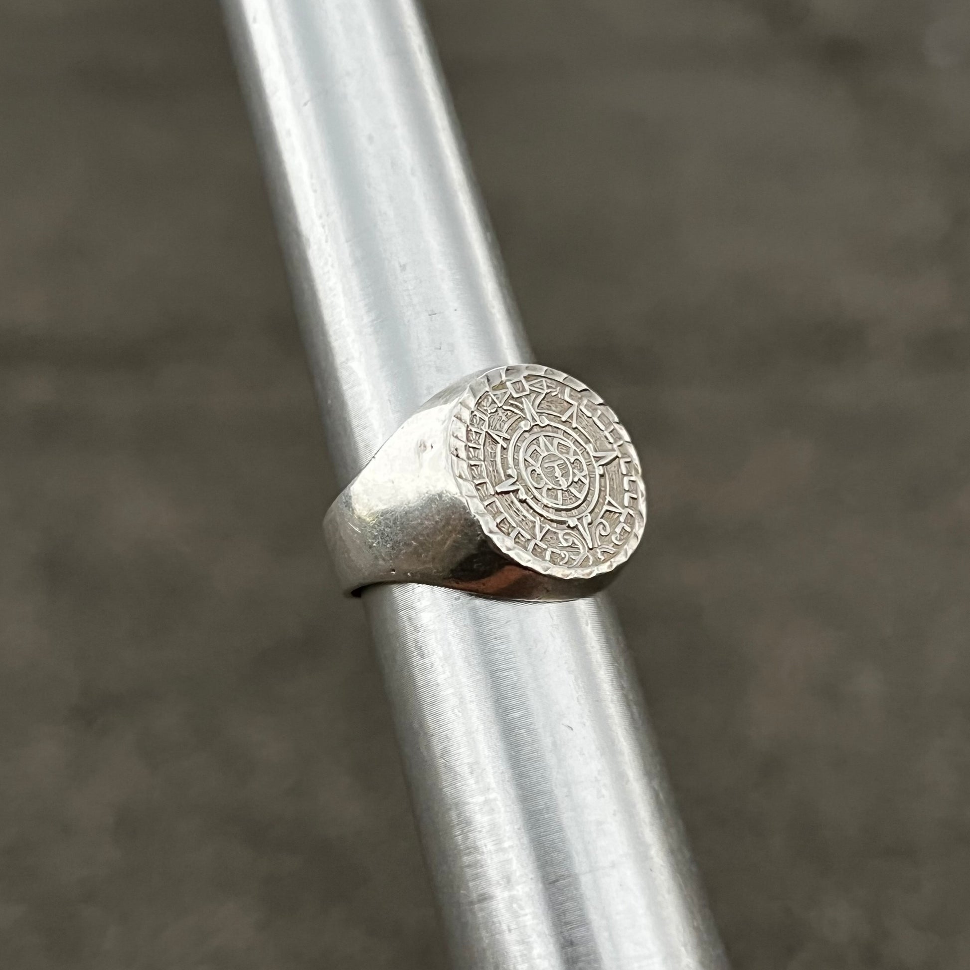 Vintage Sterling Aztec calendar signet ring. Size 7.