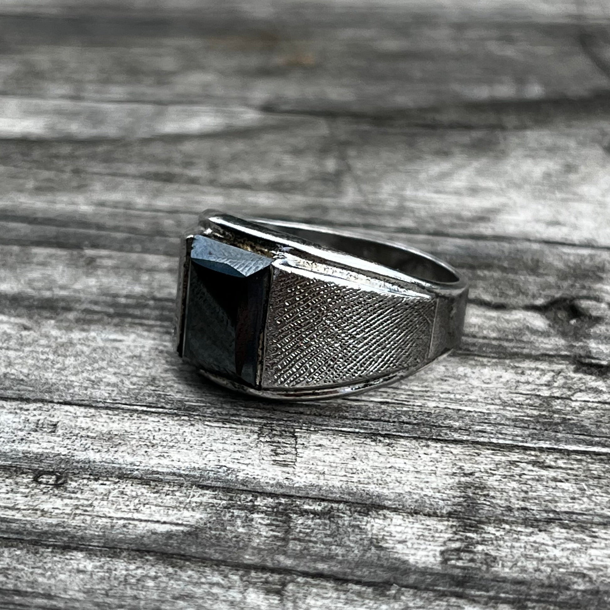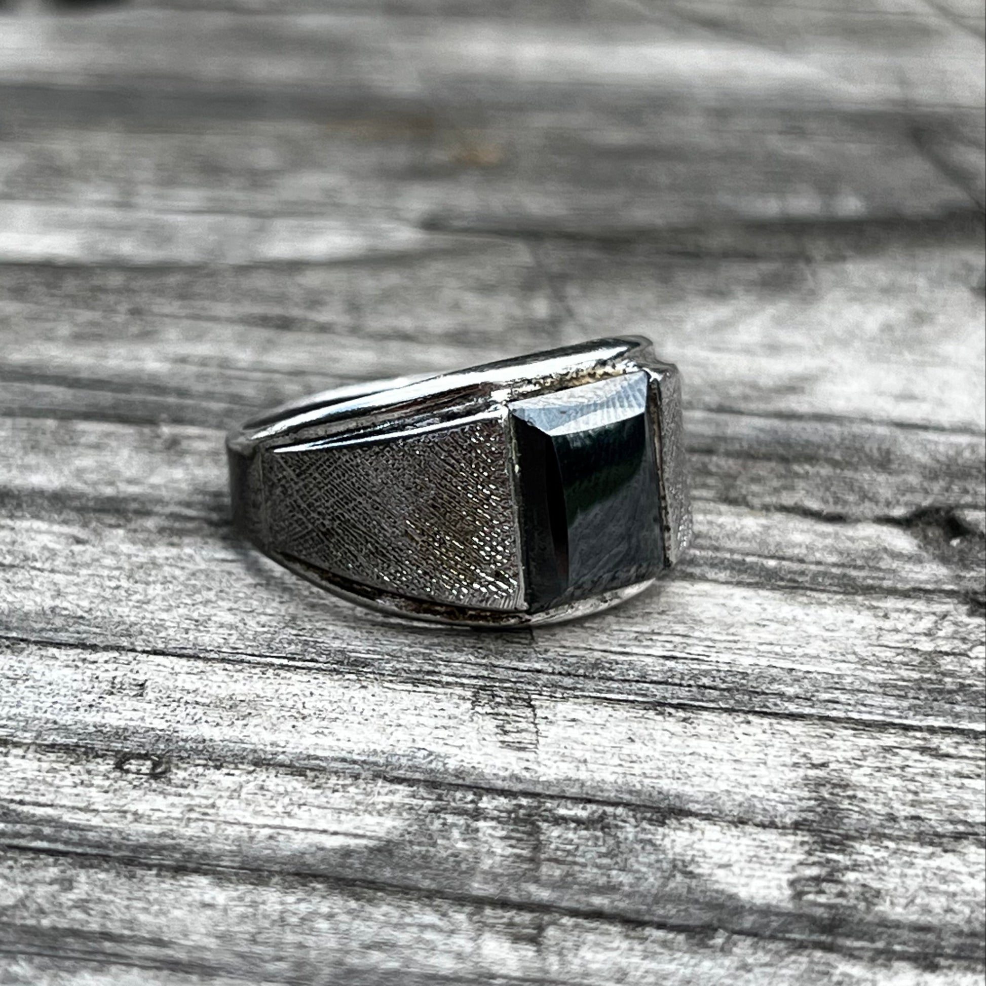 Vintage Sterling silver hematite signet ring. size 10.